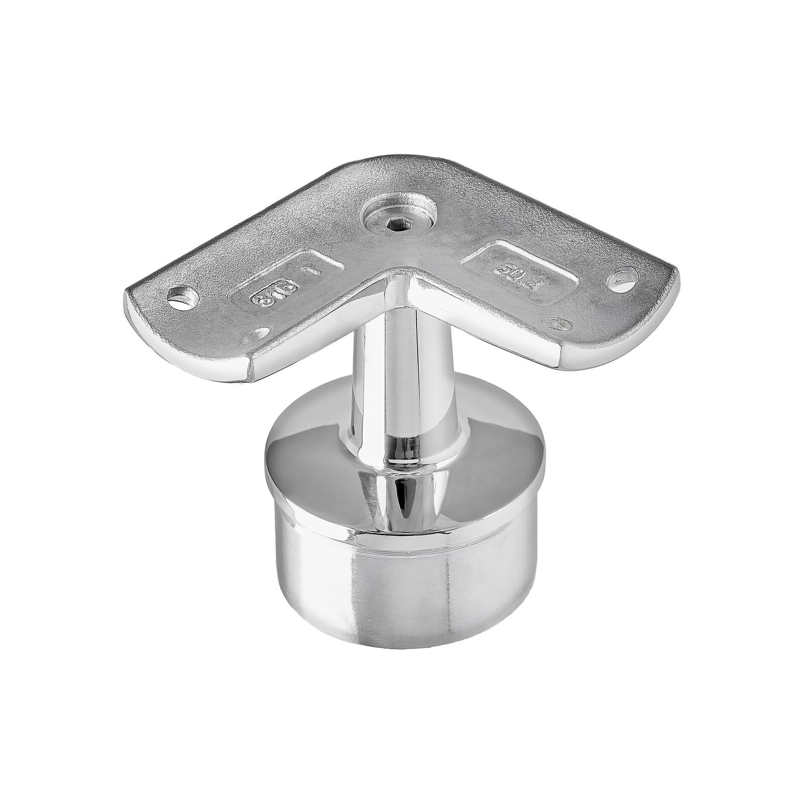 Corner Post Top with round saddle top (suits round tube handrail), designed for corner post positions where the handrail changes direction at 90 degrees. This post top assembly is designed to fit 50.8mm x 3.0mm round tube and is supplied in mirror polish. Used in conjunction with stainless steel tube and other handrail fittings to create functional balustrade and handrail systems.
